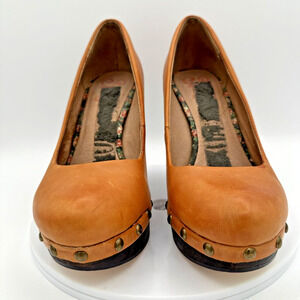 SEYCHELLES Cloak Platform Pumps US 6 Tan Leather Studded Wooden Heel Preppy Boho