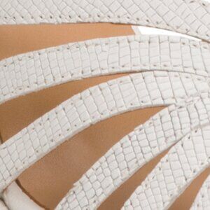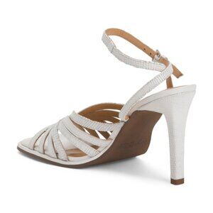 adjustable ankle strap, lightly cushioned footbed, strappy design, textured finish