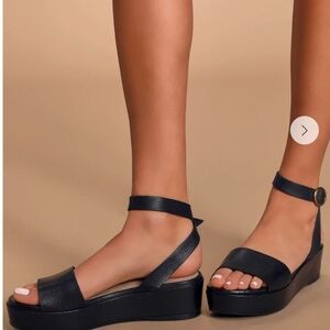 The Seychelles Monogram Flatform Sandals are made in brown pebbled leather with a cute peep-toe upper and matching ankle strap that wraps around the ankle with an antiqued gold, round buckle. Cushioned insole and rubber sole. Size 8.5 - can fit Size 9. Approximate 1.75” wrapped Flatform. In Very Good Pre-Loved condition. Original Retail: $129.