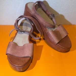 SEYCHELLES Monogram Flatform Brown Pebbled Leather Sandals Size 8.5