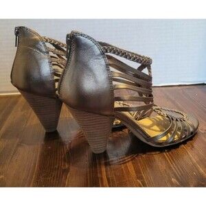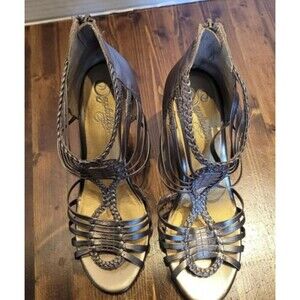 SEYCHELLES Size 7 Strappy Leather Bronze 3.75" heel zip back