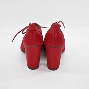 SEYCHELLES Womens Eternity Peep Toe Oxford Heels Sz 6 Red Shimmer Lace Up Retro