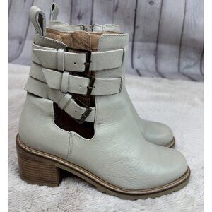 SEYCHELLES Women’s Give It A Whirl Off White Leather Buckle Ankle Booties Sz 7.5