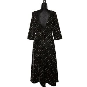 - Sezane black velvet with gold glitter polka dots Adelma midi dress