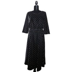 SEZANE Adelma Midi Dress in Black Velvet with Glitter Polka Dots - Size 6