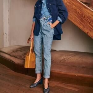 This is a pair of Sezane Austin jeans in bleached blue. Size US 2/FR 34, but these run somewhat large and have some stretch. Detachable belt. Used twice - in excellent condition.