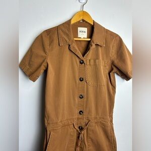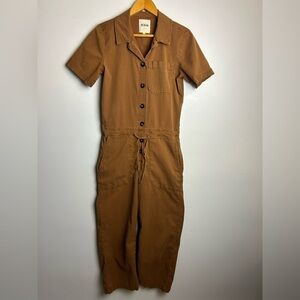 SEZANE Bennie Jumpsuit 36 Denim Coffee Brown Button-Up Luxury Minimalist Straigh