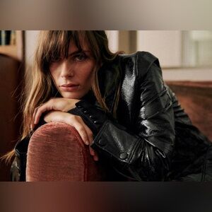 SEZANE Black Vinyl Vegan Leather Terry Jacket + Nehir Mini Skirt Set 34 2