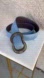 SEZANE Blue Suede Leather Gaia Belt Pull Through Belt w/ Engraved Brass Buckle