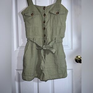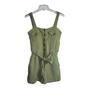 SEZANE Federica Sage Green Sleeveless Belted Romper Sz 4/36