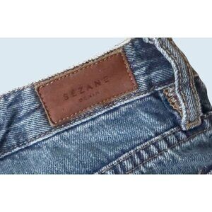 Nice pair of jeans by Sezane. Hi rise. Straight leg. Button Fly. Raw hem. 100% cotton. Size 27. *Very small hole forming in corner of back pocket. Overall really great pre-owned condition!