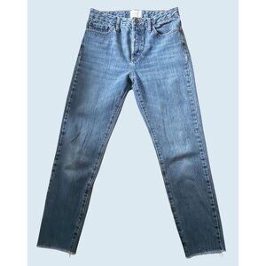 SEZANE Hi Rise Button Fly Straight Leg Raw Hem Jean Size 27
