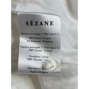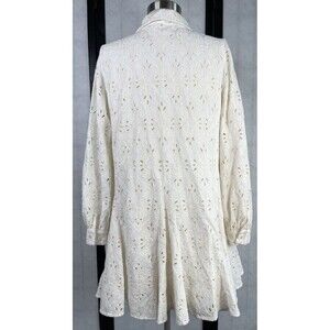 The SEZANE Marly Eyelet Short Dress in size 40 is a stylish and versatile piece perfect for travel or business occasions. Made from cotton with a lace pattern, this dress features long sleeves, a collared neckline, and button closures for a classic and sophisticated look. The dress is off white in color and has a mini length with a belted waist for a flattering fit. Its regular size 8 cut and lined interior make it a comfortable and chic choice for the warmer seasons of summer, fall, and spring. Comes with belt