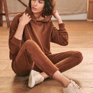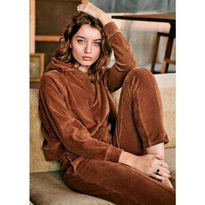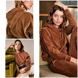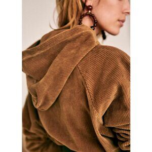 💕SEZANE💕 Mary Corduroy Cropped Hoodie Sweatshirt ~ Camel Brown Large