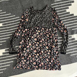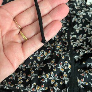 Super chic boho floral tunic by hip in-demand fashion brand Sezane. Cute hippie-adjacent floral pattern. Very good used condition. No rips, stains, holes, or obvious flaws. Size 38. Please note that I cut the tassels off of the ties. Not noticeable at all, but price reflects. This looks so cute over a pair of flares with clogs or platform loafers. Throw a corduroy blazer or cardiagn on top if it's chilly!