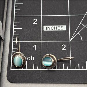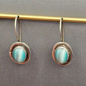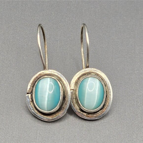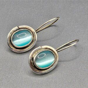 SEZGIN Sterling Silver Drop Earrings 1" Blue Cat’s Eye Signed 925 Oval 4.35g