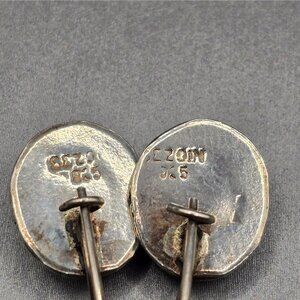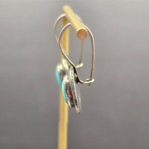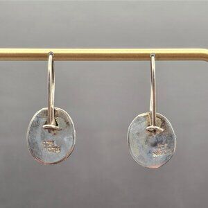 Sterling silver oval drop earrings featuring luminous blue cat’s eye gemstones. Each stone measures approx. 10.6mm x 8.4mm and is bezel-set in a sleek silver frame. Total weight: 4.35g. Signed SEZGIN and marked 925. Lever-back closures offer secure, comfortable wear. A refined pair with mystical shimmer and vintage charm. Light surface wear. Perfect for everyday elegance or quiet statement.