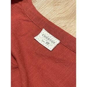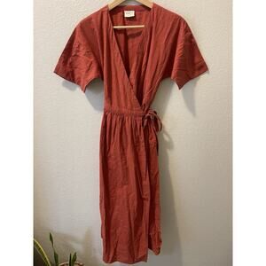 Curator SF Ainslee dress in brick red. Wrap style with pockets. Beautiful linen material.