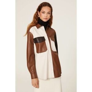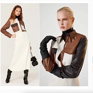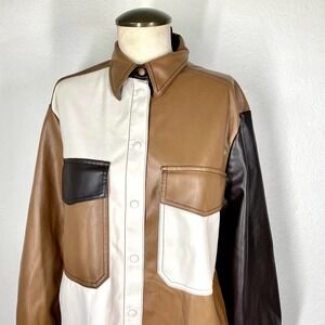 SFIZIO Faux Leather Patchwork Shacket Brown and White Women's Size M