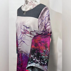 SFIZIO ITALY Gray digital print front shift dress size L.