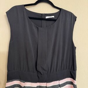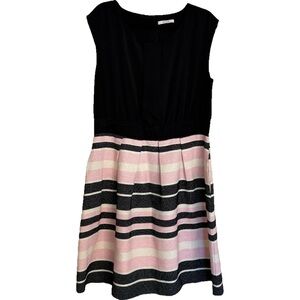 SFIZIO Made in Italy Women's Black Pink Striped Pleated Waistline Dress Sz XXL