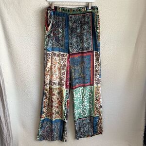 SFIZIO Pants Patchwork Velvet Trousers Pull-On Wide Leg Womens Size 12 Flawed