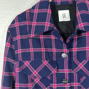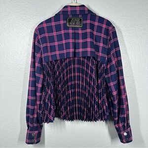 SFIZIO Plaid Jacket Women's XS Blue Pink Pleated Preppy Clueless Y2K