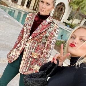 SFIZIO Printed Velvet Blazer $548 original retail size says 2 but fits up to 6