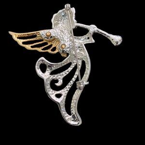 SFJ Angel Broach Pin Silvertone and Goldtone Signed Measures 2-1/2" tall x 2-1/4" wide No noted flaws.