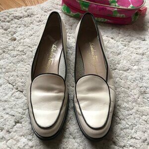S.Ferragamo Vintage Cream Black Wedge Loafer 7AAA