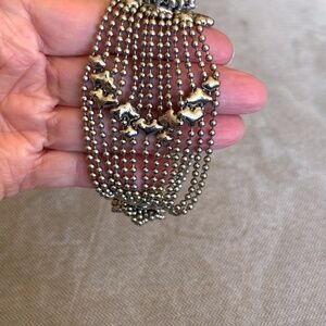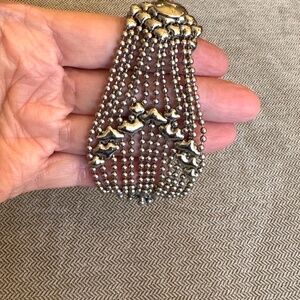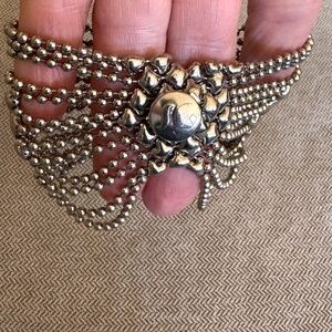 Smoke Free Home. Excellent Condition. Swarovski crystals. Snaps closure with SG logo.. This romantic sensuous and feminine SG Liquid Metal Bracelet by Sergio Gutierrez is one of the best sellers and is crafted by hand. It is created by soldering our classic silky mesh together. Added to that has an extra feature, a beautiful crystal in the center. A perfect evening night out!