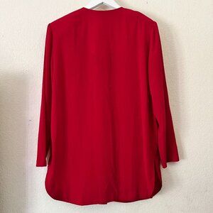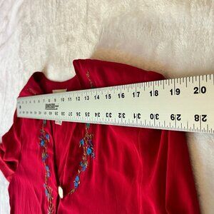 SG Sport Collection Womens Blouse Medium 10/12 Red Silky Embroidered Floral Accent