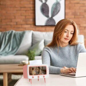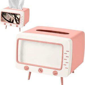Tissue Box Holder Retro TV Tissue Box Cover Cute and Practical Cell Phone Holder Tampon Holder for Bathroom Kitchen Bedroom Dressers Desks and Tables Night Stands Creative Gift (TV Pink)