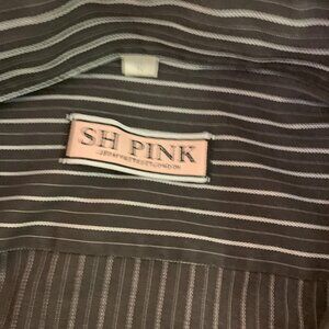 Men's button down shirt Dark grey, narrow orange stripe British sized - between XL and XXL