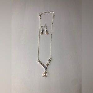SHA 18" WHITE RHINESTONE PEARL TEARDROP PENDANT NECKLACE Jewerly Set