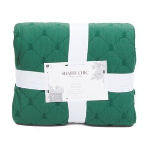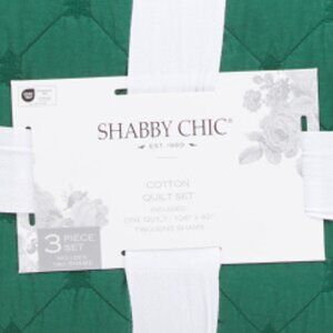 SHABBY CHIC Green Cotton Embroidered Christmas Tree Quilt Set
