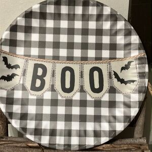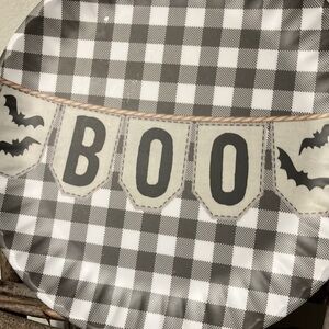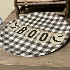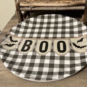 SHABBY CHIC PRE OWNED SET OF 8 BOO Black BUFFALO PLAID MELAMINE PAPER PLATES