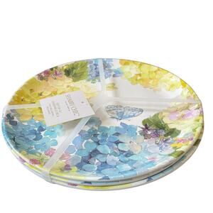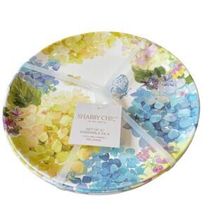 SHABBY CHIC Spring Floral Melamine 11" Dinner Plate Set of 4 Hydrangea NEW