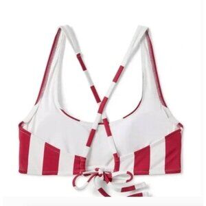 SHADE & SHORE BIKINI TOP RED WHITE STRIPED TIE BACK UNDERWIRE WOMEN'S SWIM SUIT