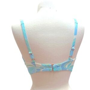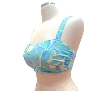 Stylish and vibrant, this blue and green patterned bikini top is perfect for your next beach day. Enjoy comfort and style with its unique design.