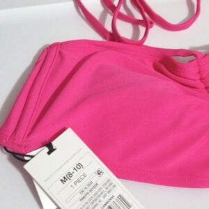 SHADE & SHORE PINK HALTER TIE STRAPPY DRAWSTRING BIKINI TOP SIZE MEDIUM NWT
