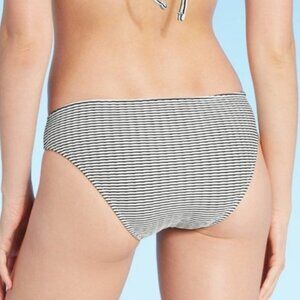 SHADE & SHORE black & white optical illusion ribbed medium coverage hipster bikini bottom L NWT