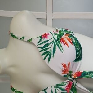 SHADE & Shore Bikini Top Swim Leaf Flower Print White Size 34B