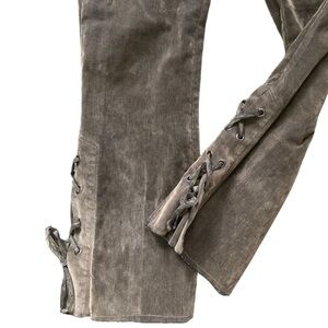 SHAFT JEANS Florence Italy Lola hr Velvet Flock Pants Lace up Hem in Oro Verde