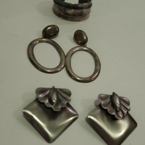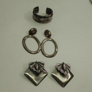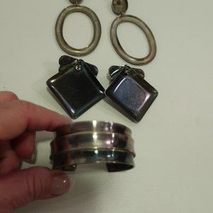 WOMENS SHAG BOUTIQUE 3PC COSTUME JEWLERY SILVER CUFF BRACELET/2 EARRINGS SET*