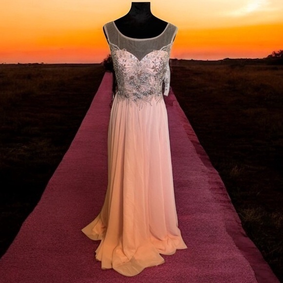 Gorgeous color with rhinestone top, sheer over shoulders, 6” zipper in back, lined.