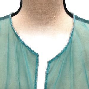 SHAMASK BEADED TURQUIOSE BLUE SILK ORGANZA OPEN JACKET
