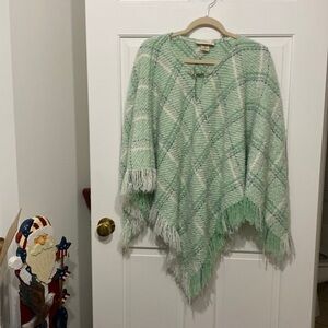 Green & Ivory Irish Made Poncho One Size Wool Alpaca Blend Boyne Valley Weavers measurements 35 inches including fringe.
