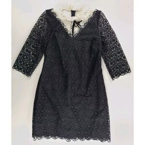 SHANI Ruffle Lace Collared Dress Women's 8 Black White Floral Applique Nun Core. Customer return. Item has been tried on and the tags have been cut out, but the dress is in otherwise new condition.