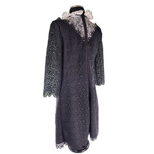 SHANI Ruffle Lace Collared Dress Women's 8 Black White Floral Applique Nun Core